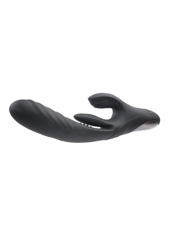 Rapid Rabbit offers a trio of delights designed to bring you endless pleasure effortlessly. Explore the 3 thrusting speeds of the perfectly curved shaft, the 10 uniquely stimulating speeds of the flapper shaft, and the 7 powerful clitoral sensations in the external stimulator. Made of velvet-smooth silicone, discover new pleasures with this unique Rabbit Vibrator.